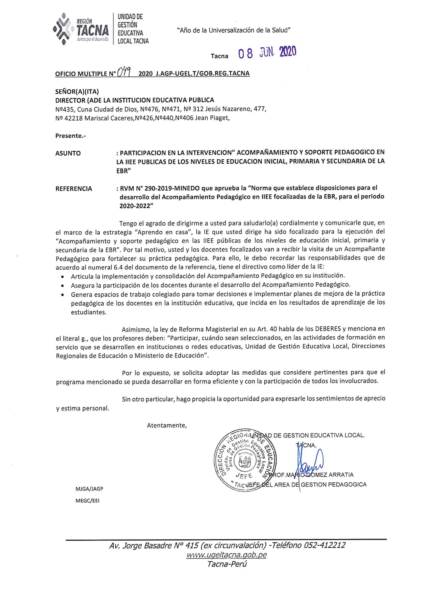 PARTICIPACIÓN EN LA INTERVENCIÓN "ACOMPAÑAMIENTO Y SOPORTE PEDAGÓGICO EN LAS IIEE PÚBLICAS DE LOS NIVELES DE EDUCACIÓN INICIAL, PRIMARIA Y SECUNDARIA DE LA EBR"