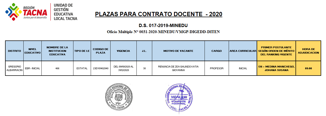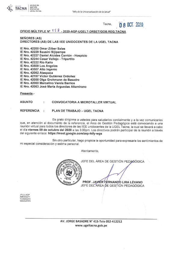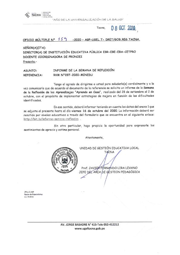 Descripción: Oficio múltiple N° 159-2020-AGP-UGEL.T-DRET/GOB.REG.TACNA