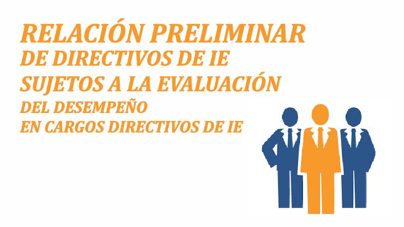 RELACIÓN PRELIMINAR DE DIRECTIVOS DE IE SUJETOS A LA EVALUACIÓN DEL DESEMPEÑO EN CARGOS DIRECTIVOS DE IE Imagen Institucional 2018-06-07 20:18:05 Descripción: UGEL TACNA Descargar documento