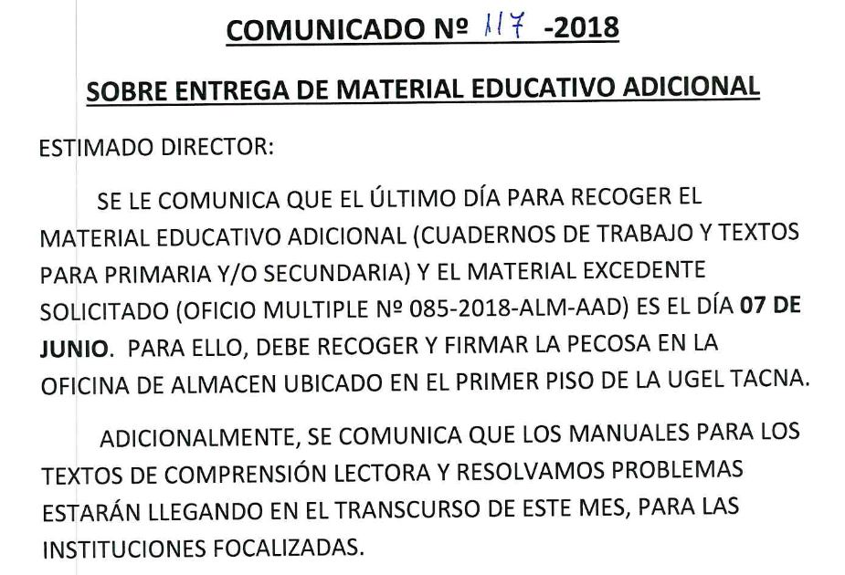 ENTREGA DE MATERIAL EDUCATIVO REGIONAL Imagen Institucional 2018-06-05 14:30:13 Descripción: COMUNICADO 117-2018-AGP-UGELT Descargar documento