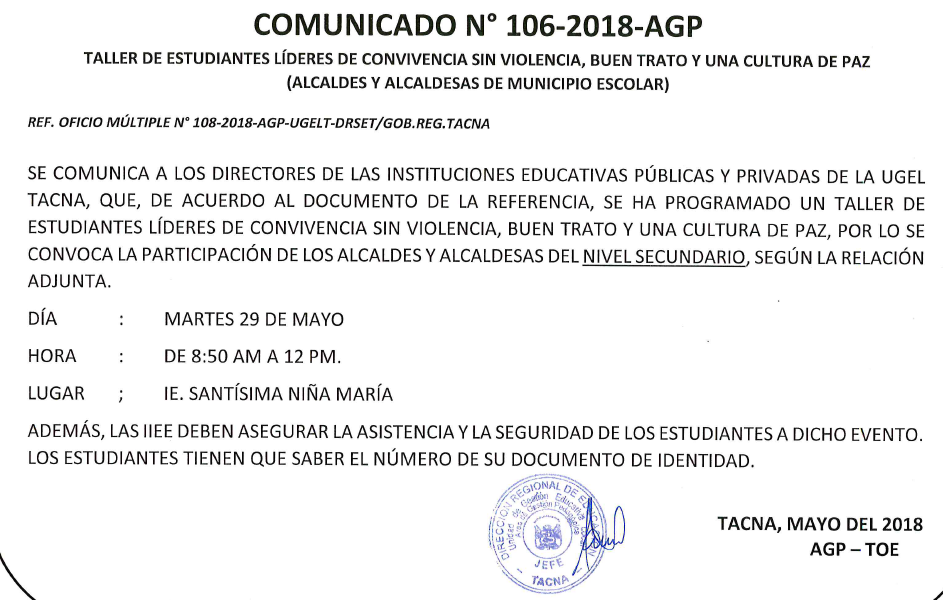 Descripción: PROCESO DE ENCARGATURA DE PLAZAS VACANTES DE CARGOS DIRECTIVOS PARA EL AÑO LECTIVO 2018