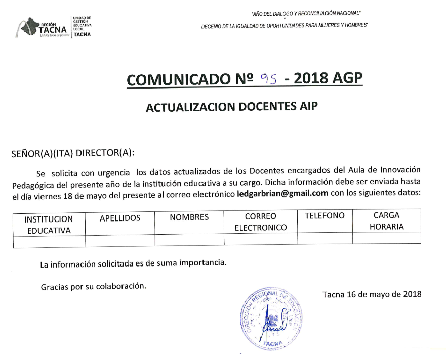 Descripción: PROCESO DE ENCARGATURA DE PLAZAS VACANTES DE CARGOS DIRECTIVOS PARA EL AÑO LECTIVO 2018