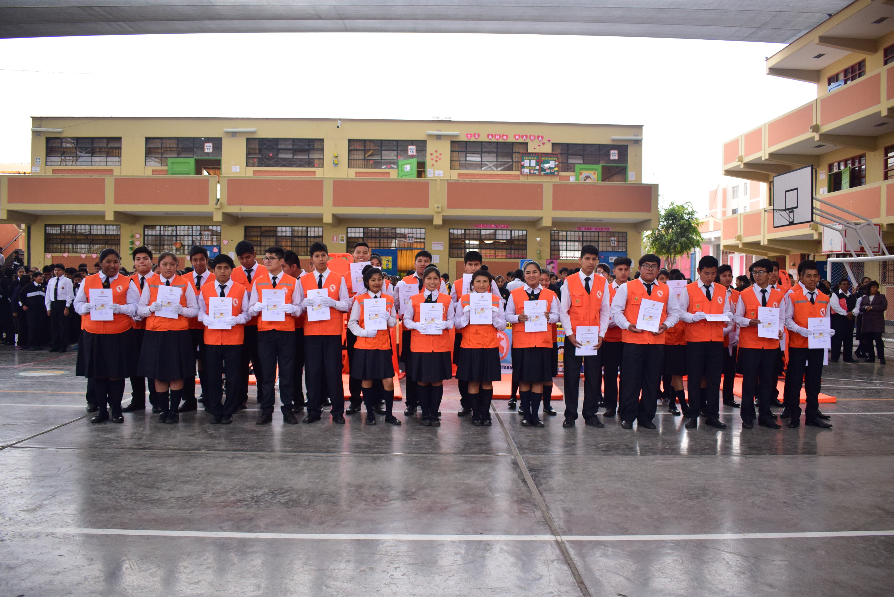 En la I.E. Jorge Chávez del distrito Albarracino, 41 estudiantes del 4to. y 5to. de secundaria juramentaron como miembros del Servicio Escolar Solidario en la Preparación y Atención de Desastres (SESPAD) de su propia institución educativa.